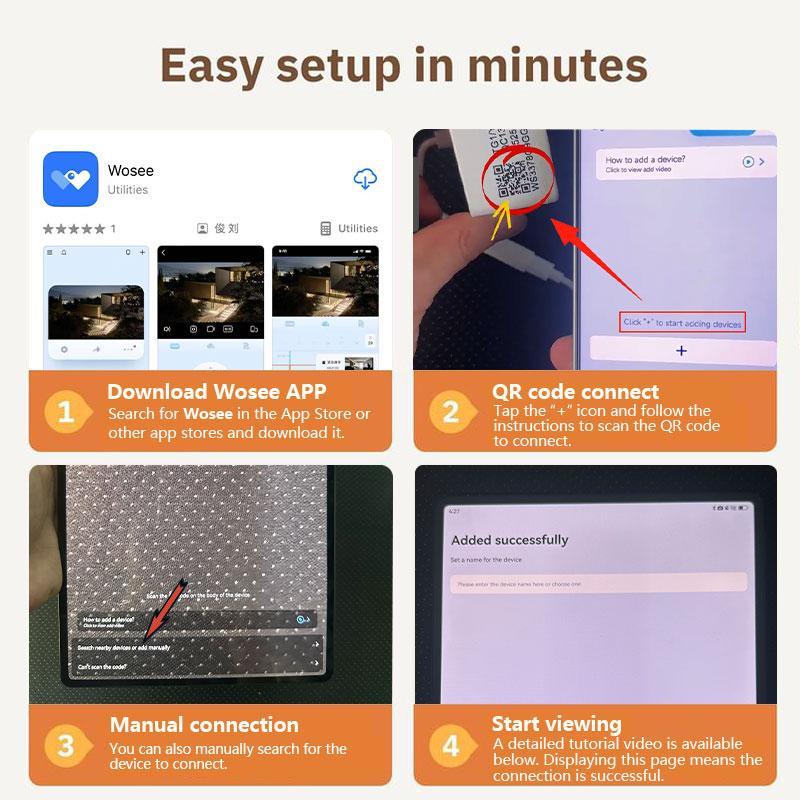 Key Features:·Excellent night vision enhances security in low-light conditions.·Easy to install – setup takes only about five minutes.·Delivers high-quality 2K resolution video.·Supports video recording, photo capture, voice, and AI human tracking.·Compact size, can be attached to window corners to prevent damage and theft, offering stronger concealment.·Supports cloud recording and SD card storage. Target Scenario:·Monitoring the exterior of a home or property.·Recording video footage for security purposes.·Capturing high-quality images and videos in low-light conditions.·Provides safer and more discreet outdoor security monitoring.Product shipment includes: