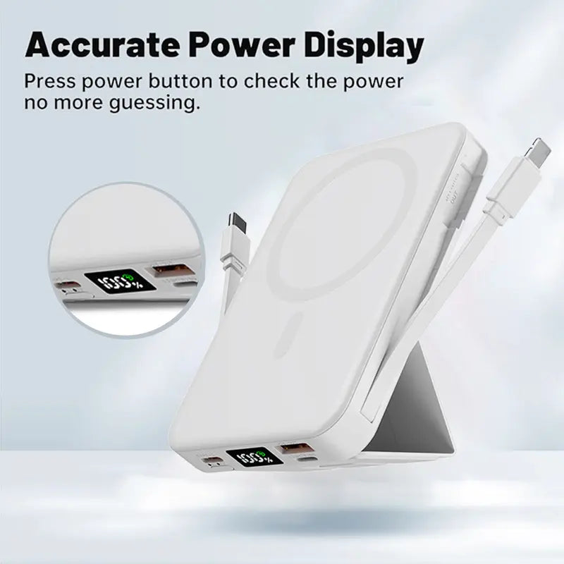 Tight InventoryMagsafe Battery PackIntroducing the VIL Magsafe Battery Pack, your reliable and efficient power bank designed to keep your iPhone charged and ready for any adventure. Key Features:·10000mAh Capacity: With a 10,000mAh capacity, this battery pack is perfect for extended use, ensuring you have enough power for your daily activities.·22.5W PD Fast Charging: Enjoy quick and efficient charging, allowing you to quickly recharge your iPhone without the need for a traditional power bank.·USB-C Cable: Connect your iPhone directly to the power bank via USB-C cable for a seamless charging experience.·LED Display: The LED display provides clear and easy-to-read information about the battery level and charging status, helping you monitor your device's performance.·Wireless Charging: Enjoy wireless charging, eliminating the need for a cable and reducing the risk of interference.·Stand Design: The stand feature allows you to keep your iPhone securely in place while charging, making it convenient for hands-free use.Compatibility:·IPhone 16·IPhone 15·IPhone 14·IPhone 13·IPhone 12Upgrade your iPhone's charging experience with the VIL Magsafe Battery Pack, ensuring your device stays powered up and ready for any adventure.
